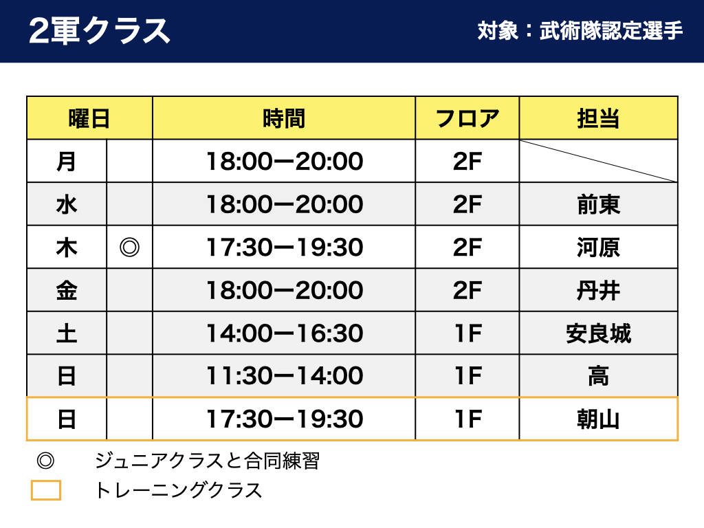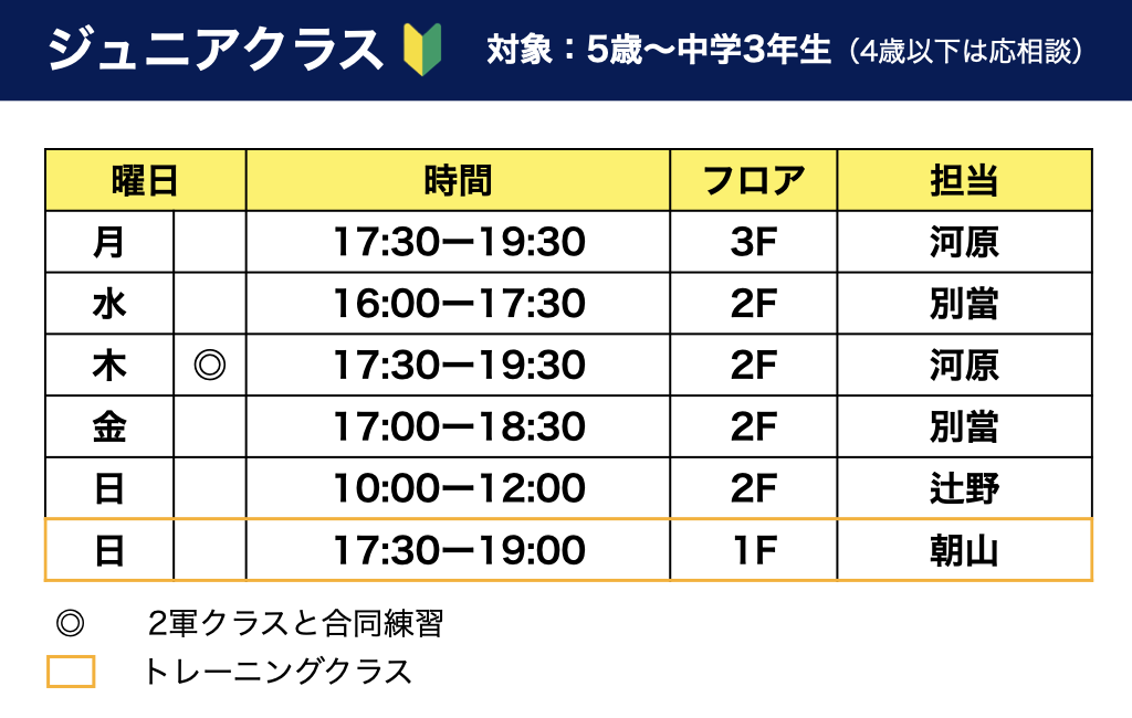 会場都合により、ジュニアクラスの実施時間が一部変更となります。
